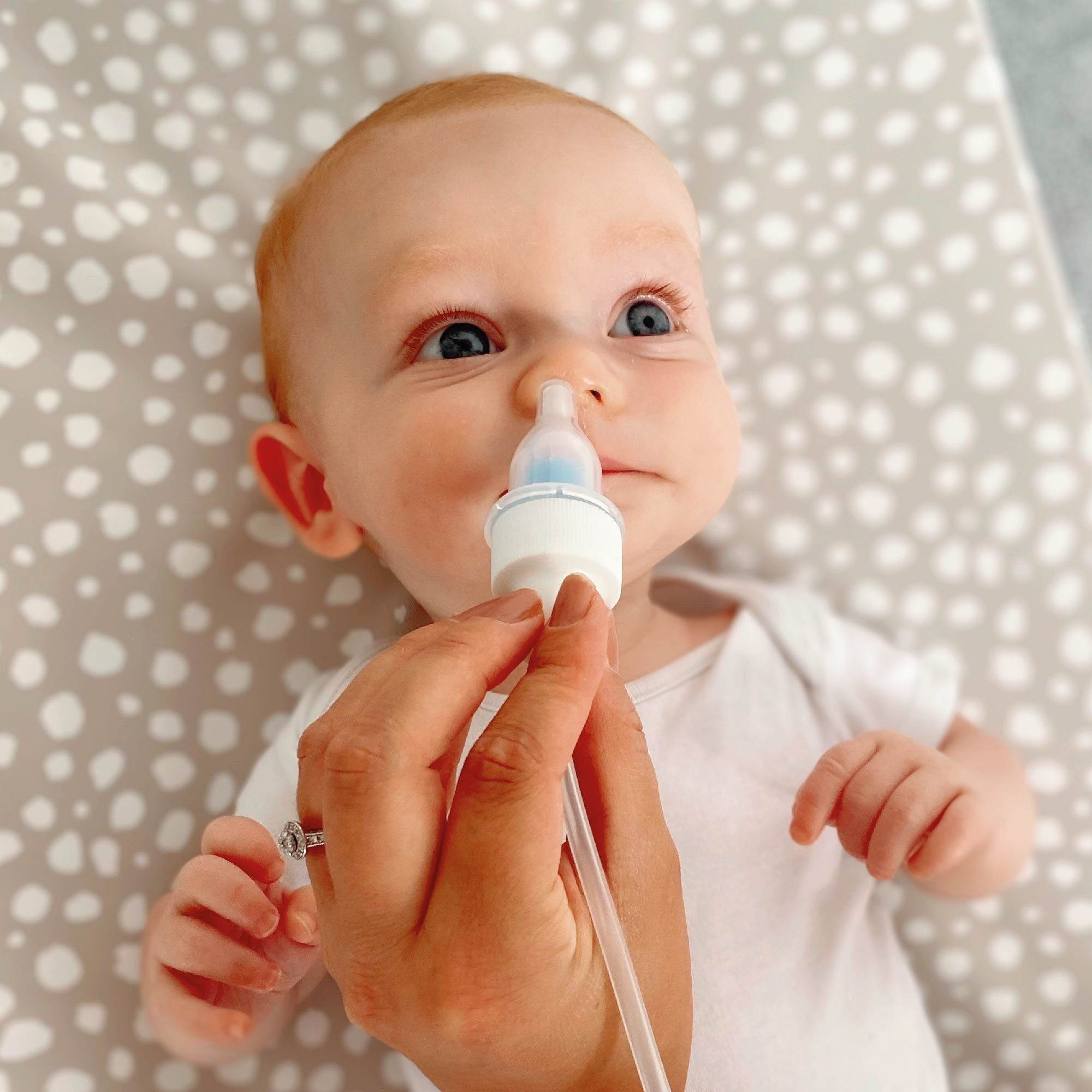 Since babies can’t blow their noses, mucus can easily build up and cause a blocked nose. A nasal aspirator gently removes mucus using suction, helping to clear out your baby’s nose.
